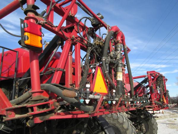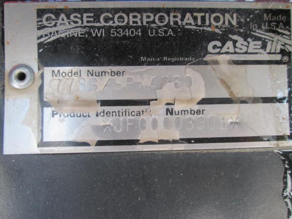 2001 CaseIH SPX 4260, Cummins diesel engine, hydrostatic transmission, heat, air conditioning, Am/Fm radio, 1200 gallon stainless steel liquid system, 90' boom, 20" centers, 135 gallon poly rinse tank, foam marker, dual nozzle bodies, fence row nozzles, 6-way shutoffs, Norac UC4 boom control, hydraulic adjustable axles, Mid Tech controller w/ GPS swathing, 380/90R46 tires (60%), shows 5817 hours.