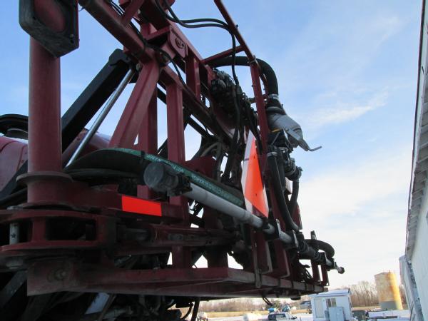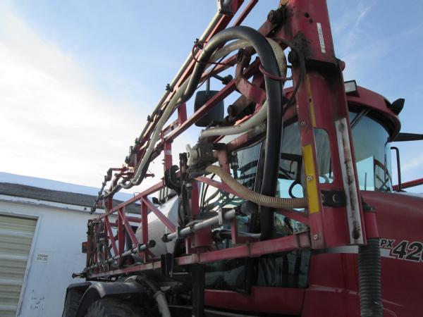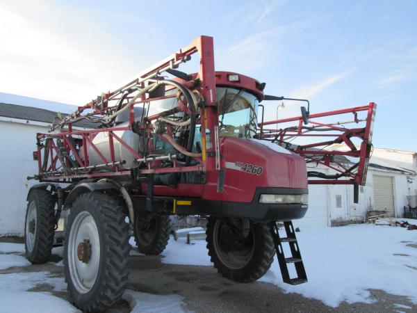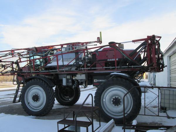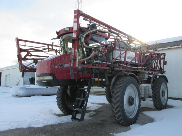 2001 CaseIH SPX 4260, Cummins diesel engine, hydrostatic transmission, heat, air conditioning, Am/Fm cassette radio, 1200 gallon stainless steel liquid system, 100' boom (boom is broke on the right side, see pictures), 20" centers, foam marker, dual nozzle bodies, fence row nozzles, 5-way shutoffs, 135 gallon poly rinse tank, hydraulic adjustable axles, Ag Leader controller, Insight GPS swathing, 380/90R46 tires (60%), shows 6102 hours.