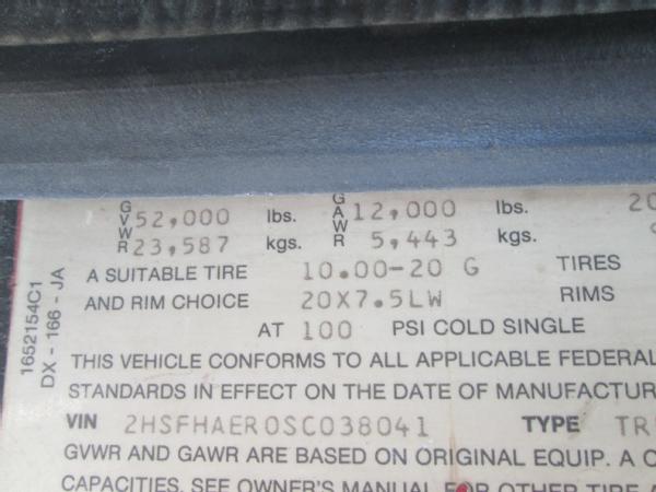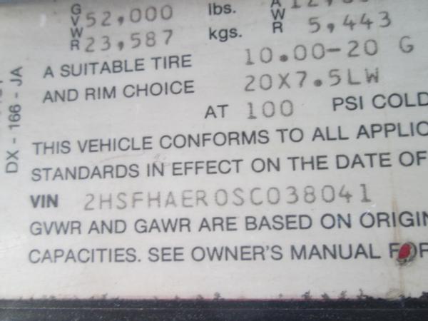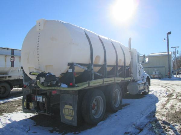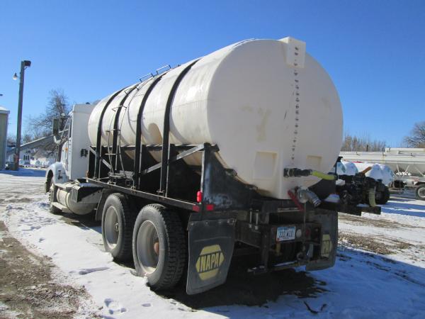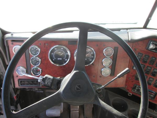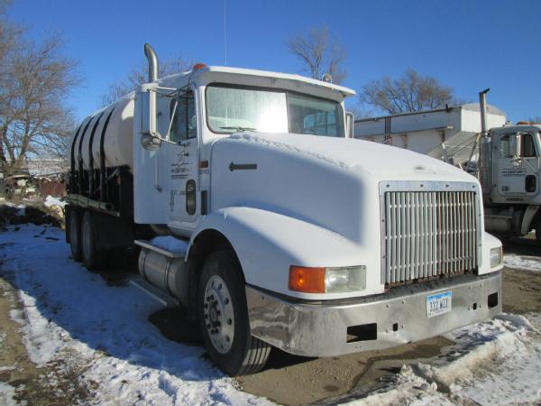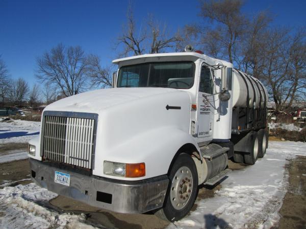 1995 IHC 9400, Cummins N14 diesel engine, 10 speed transmission, heat, air conditioning, Am/Fm radio, air ride suspension, tandem axle, full screw, air dump valve, differential lock, power/heated mirrors, engine brake, cruise control, 3200 gallon crown poly tank, skid frame, 3" outlet, Briggs 5HP gas motor, 2" Pacer pump & hose, 11R24.5 tires, 10 aluminum Budd wheels, shows 776,806 miles.