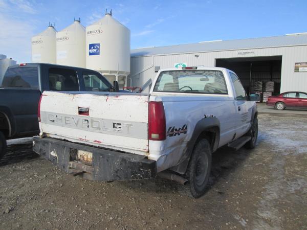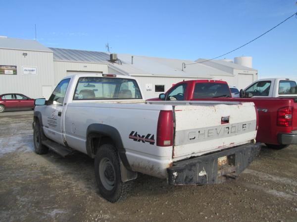 1996 Chevrolet 3500 4x4, 454 gas engine, automatic transmission, heat, air conditioning, Am/Fm cassette radio, tilt wheel, cruise control, ruglar cab, long box, aluminum running boards, DMI rear bumper, 265/85R16 tires, shows 325,212 miles.