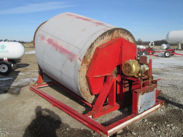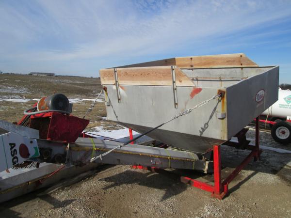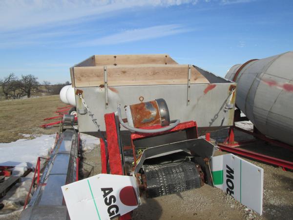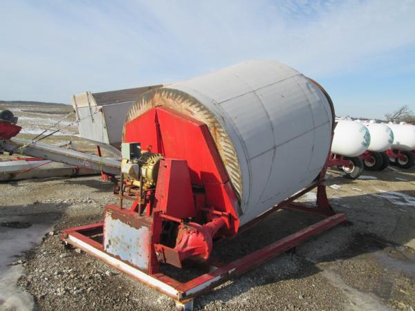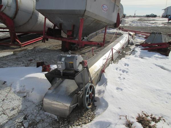 Kraus 8 ton drum blender, 20HP electric motor, stainless steel hopper, stainless steel load out conveyor w/ 7.5HP electric motor. IQ Plus digital read out and load cells.