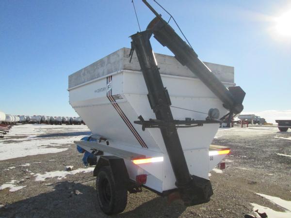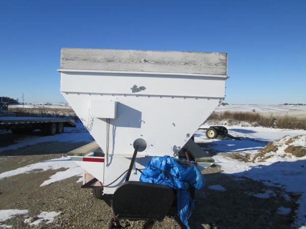 Parker weigh wagon, single axle gear, Wisconsin gas engine, wood top extensions, wood catwalk, manual fold auger, J Star digital scale head, 265/75R-16 tires.