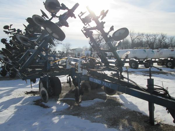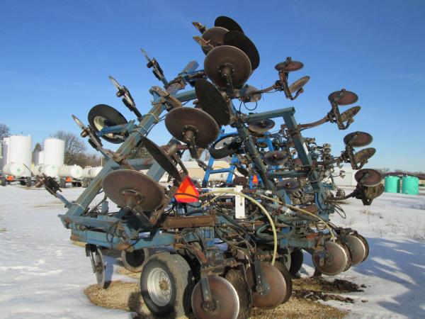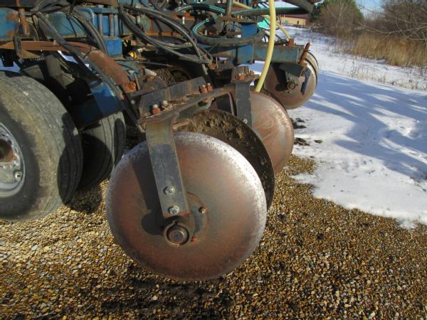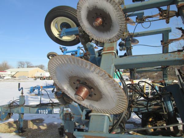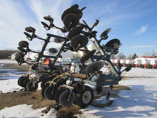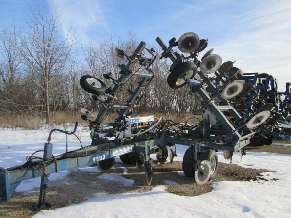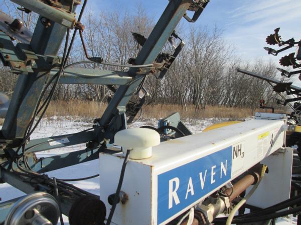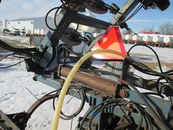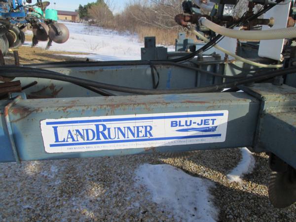 Blu-Jet Landrunner 13 knife pull type tool bar (Unit 7807), 32.5', dual main frame wheels, hydraulic wings, manual gauge wheels, front ripple coulters, double disc sealers, wired for Raven (NO BOX).