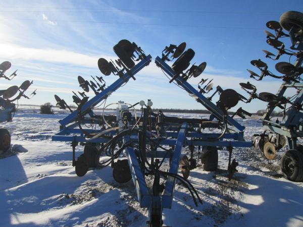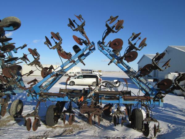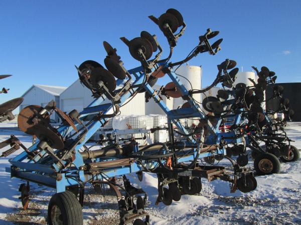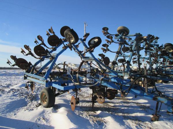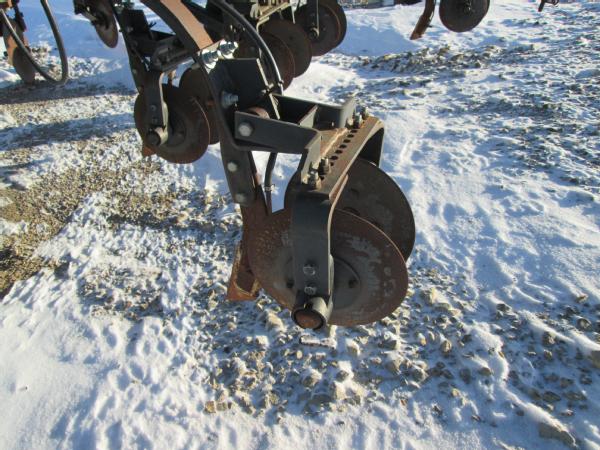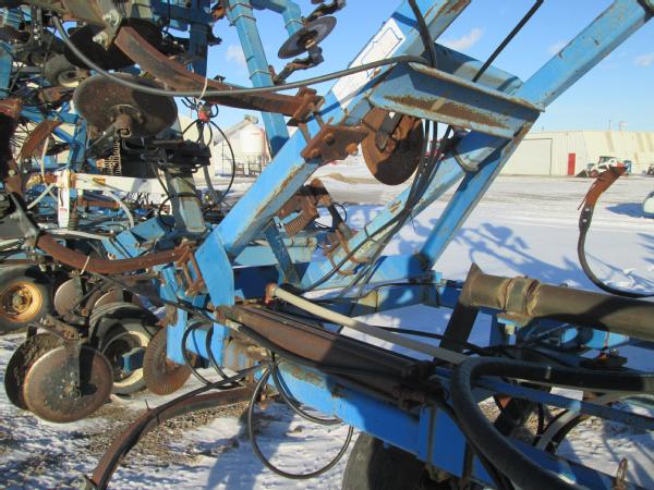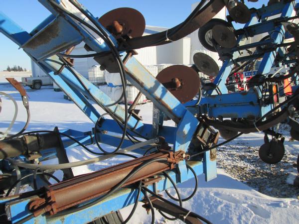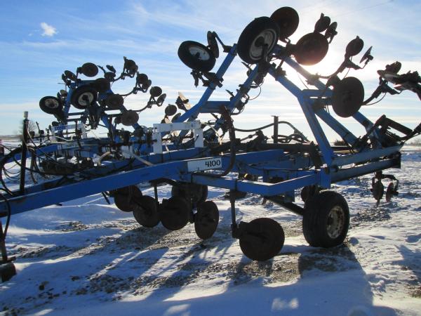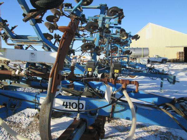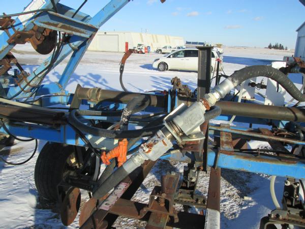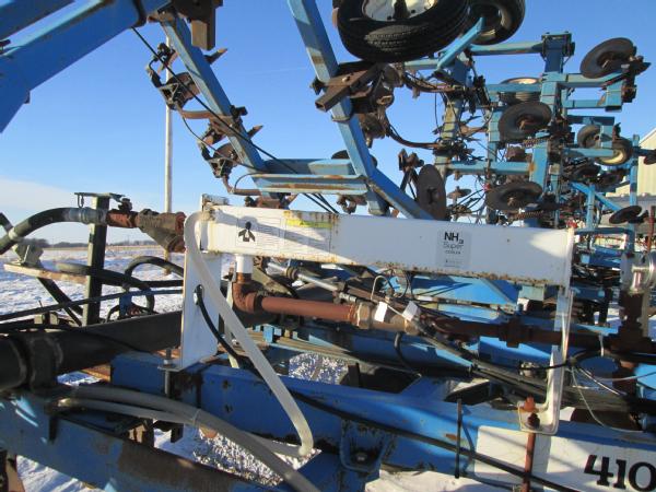 DMI 4100 pull type tool bar, 13 knife, 32.5', hydraulic wings, manual gauge wheels, front coulters, double disc sealers, Raven super cooler, wired for Raven controller, 12.5-15 tires.