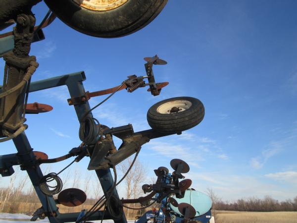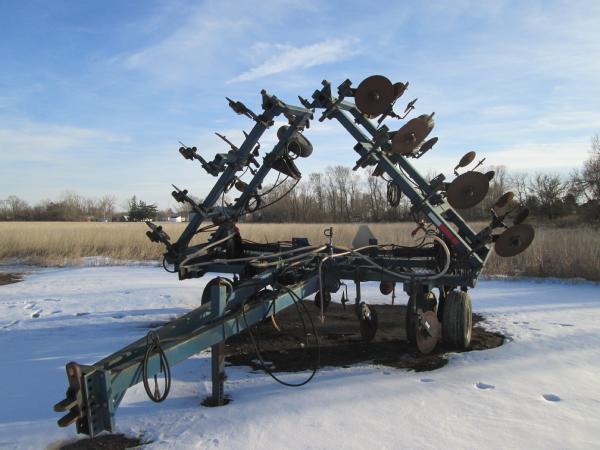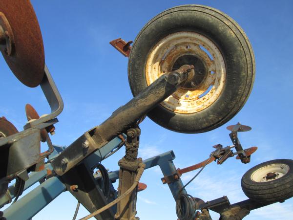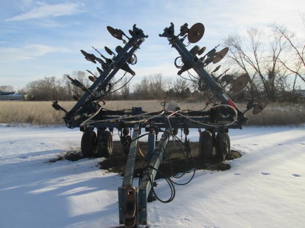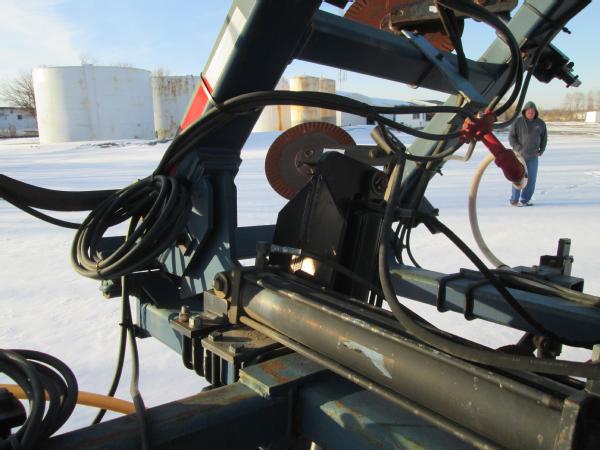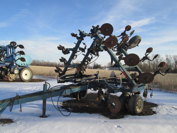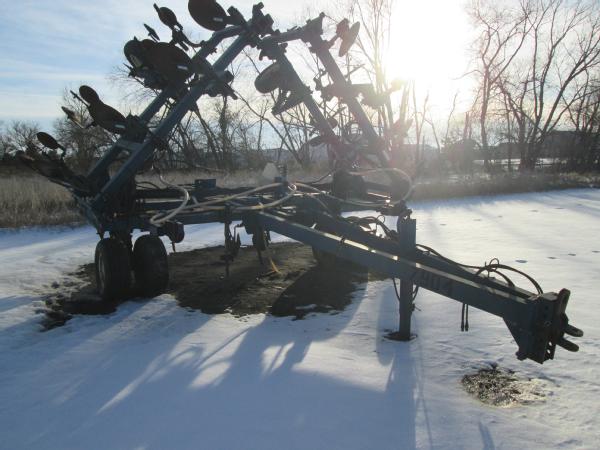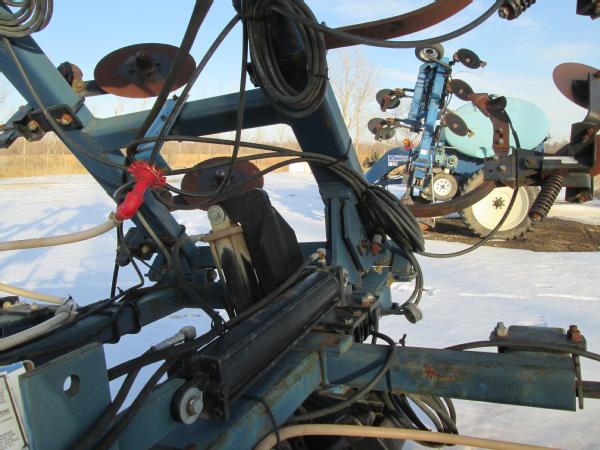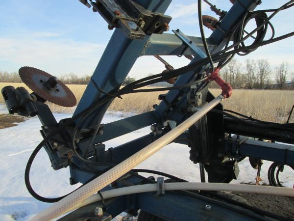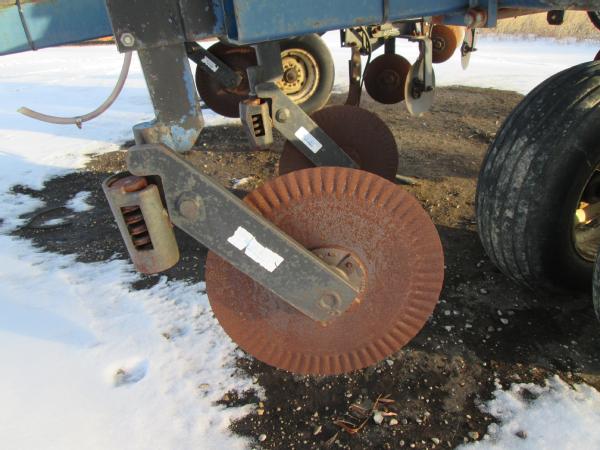 Blu-Jet 13 knife pull type tool bar (Unit 7904), 32.5', dual main frame wheels, front ripple coulters, double disc sealers, hydraulic wings, hydraulic gauge wheels, NO FLOW METER.