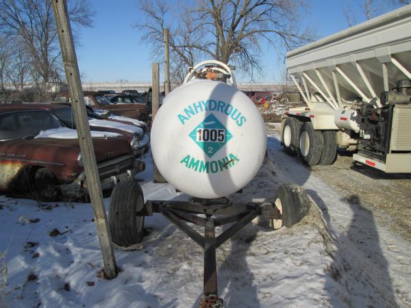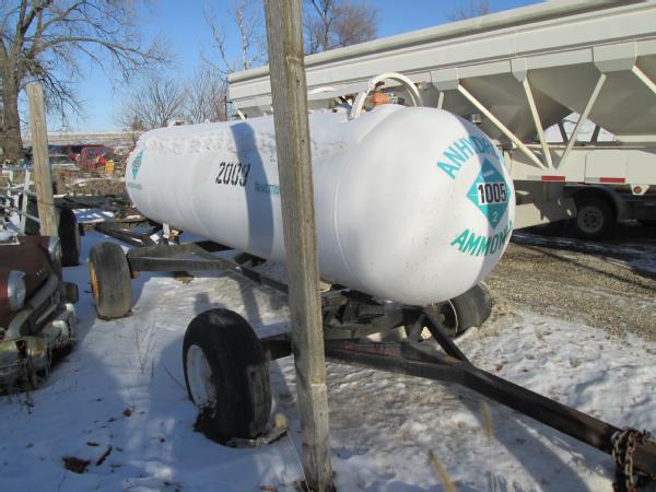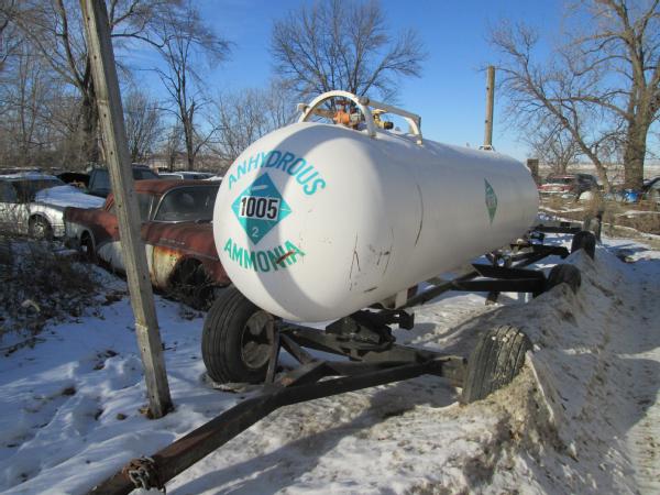 Trinity 1000 gallon NH3 nurse tank (Unit 2009), top front fill, 5th wheel running gear, data tag.