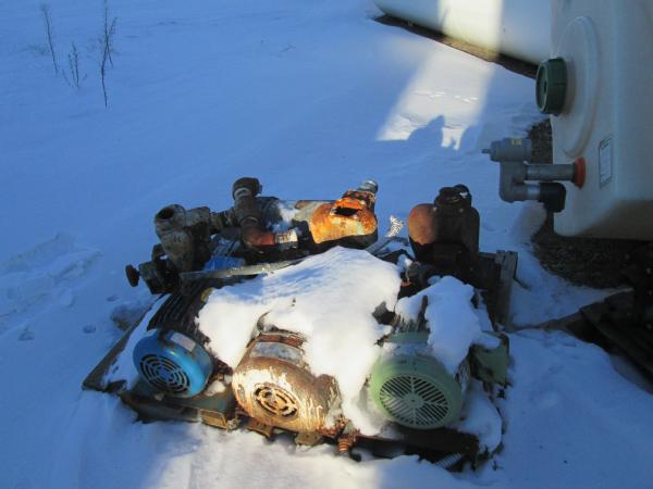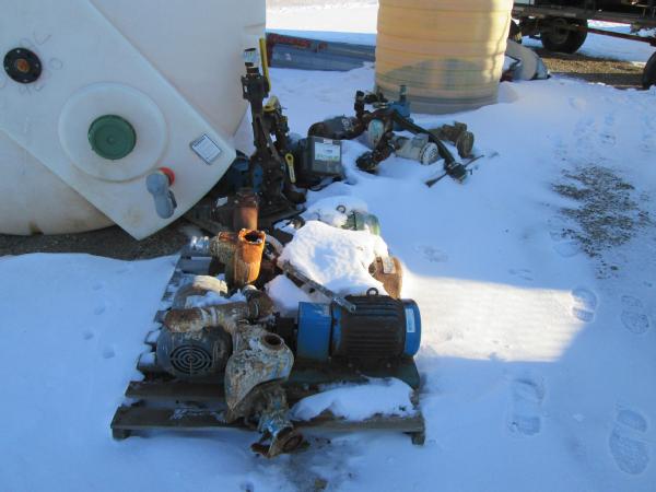 (3) pallets contain (7) electric motors and 2" cast pumps.
