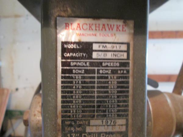 Black Hawk FM-917 5/8" drill press (Unit G).