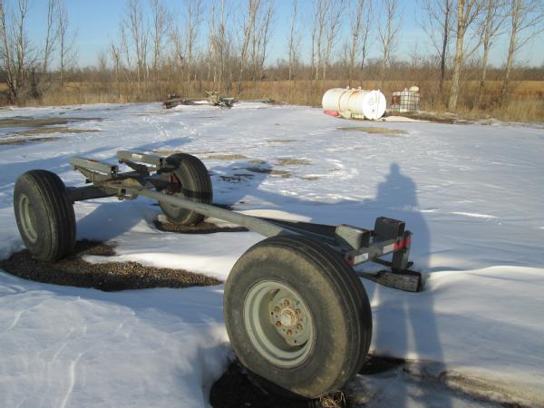 5th wheel running gear, 12.5-15 tires. This gear only has 3 tires and is missing the hub.