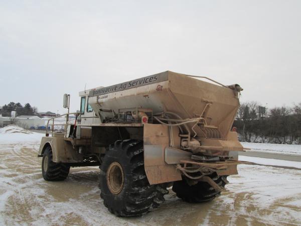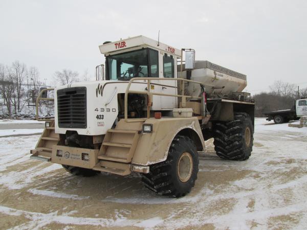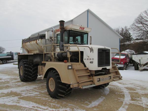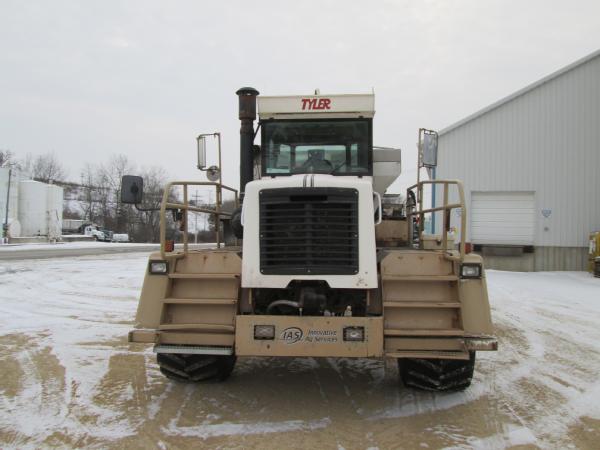 1998 Tyler Mertz 4330, Cat diesel engine, Allison Automatic transmission, heat, air conditioning, Am/Fm cassette radio, tilt/telescoping wheel, New Leader L3020 G4 stainless steel dry box, belt/chain, rear MultApplier belt, roll over tarp, Raven SmarTrax, GPS swathing, 48x31.00-20 front tires (90%), 66x43.00-25 rear tires (40%), shows 6539 hours, shows 77,563 miles.