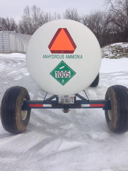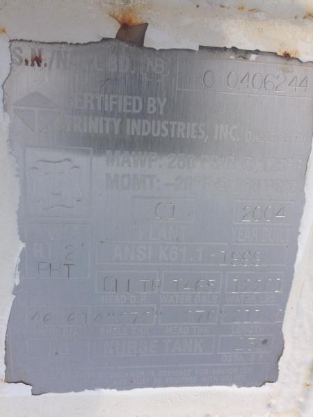 2004 Trinity 1450 gallon NH3 tank on DuoLift 4 wheel gear, Unit S23, top front fill, data plate, flotation tires.