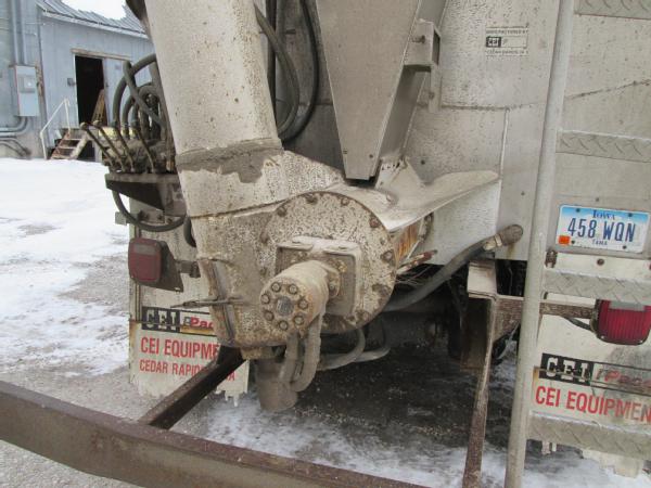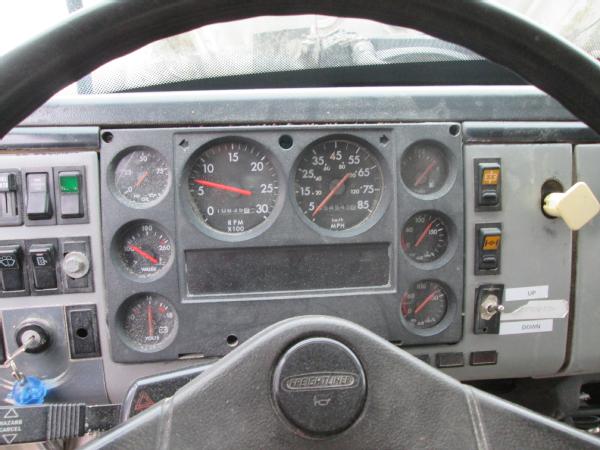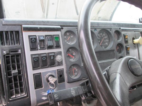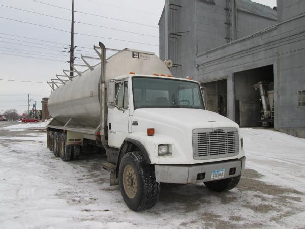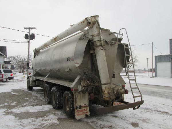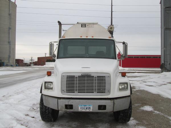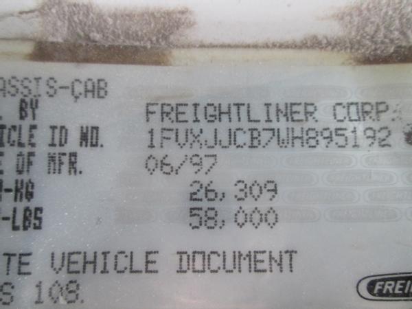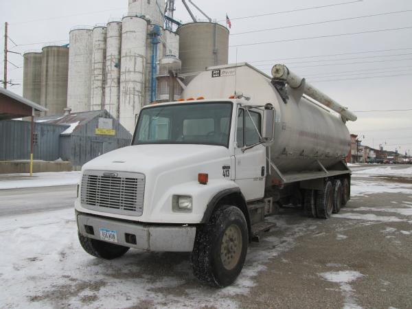 1997 Freightliner FL80, Cat 3126 diesel engine (new long block engine in April 2013), 10 speed transmission, heat, air conditioning, Am/Fm radio, cruise control, air ride suspension, differential lock, tandem axle, full screw, air tag axle, air dump valve, 18,000lb front axle, 40,000lb rears, CEI Pacer 18 ton aluminum feed body, 6 compartment, remote controls, S/N A35HCL241742, 11R22.5 tires, Budd wheels, shows 454,543 miles.