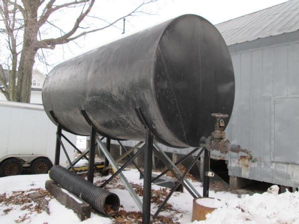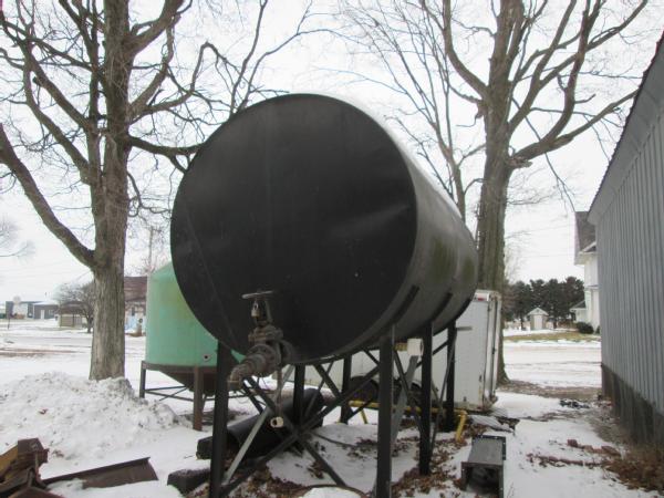 2000 gallon molasses tank on stands, tank has approx. 8200lbs of molasses in it and will be included in the sale of the lot.