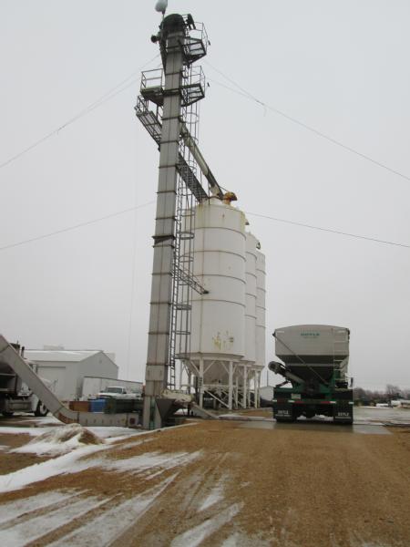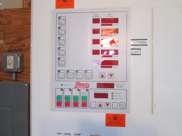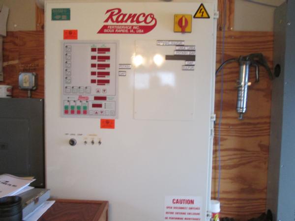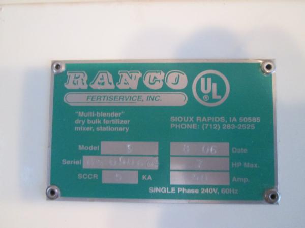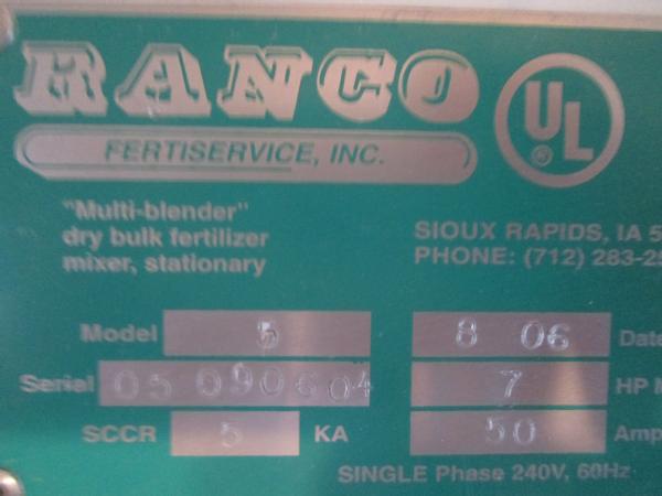 Self contained dry fertilizer blending plant, 3 - Friesen dry storage tanks are 150 ton each, 60' stainless steel receiving leg w/110 ton per hour & 10 hp electric motor, drive over incline unloading conveyor w/7.5 hp electric motor, 62' over bin 12" U-trough, was rebuilt in 2011, 5 dump chutes & 15 hp electric motor, 3 - 10" fiberglass metering units, 80' bottom blending 14" fiberglass U-trough, the last 25' is 18", 15 hp electric motor, Schlagel stainless steel loadout conveyor, heavy duty pintle chain, 7.5 hp electric motor, Ranco blending controls are included.