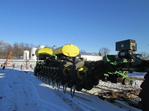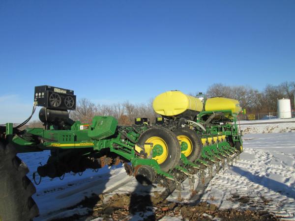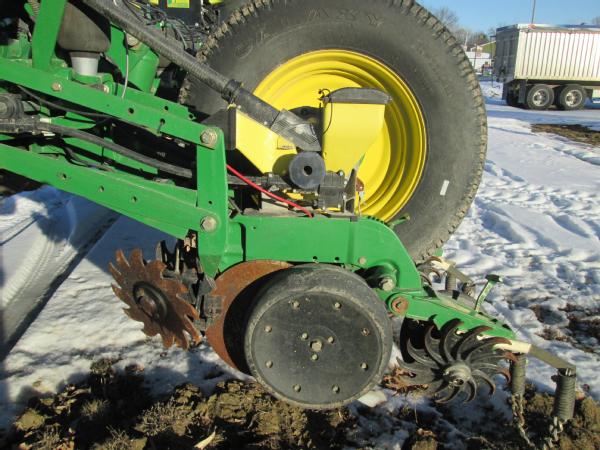 2010 John Deere 1770 NT planter, 24 row, new disc openers, drag chains, seed flow meters, individual hydraulic row pressure, row command, Precision 20/20 seed flow monitoring.