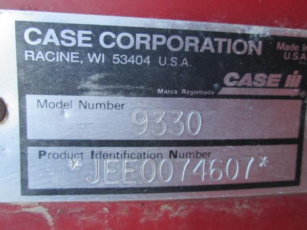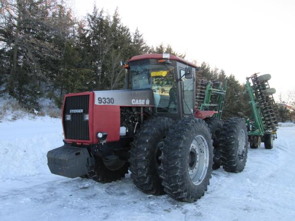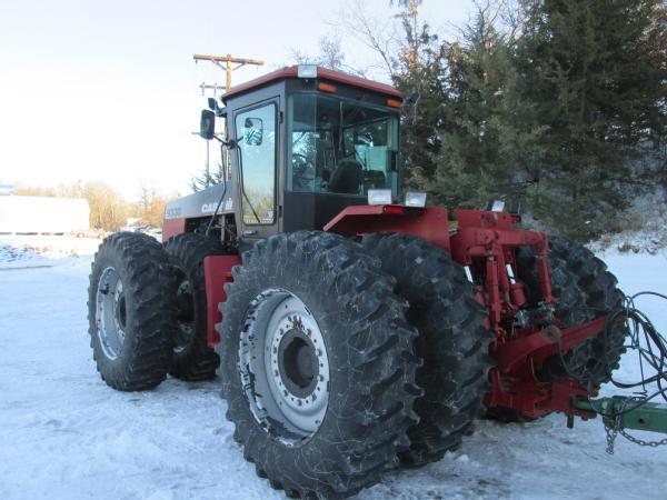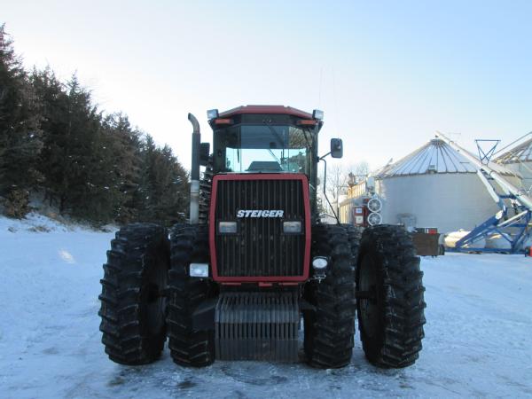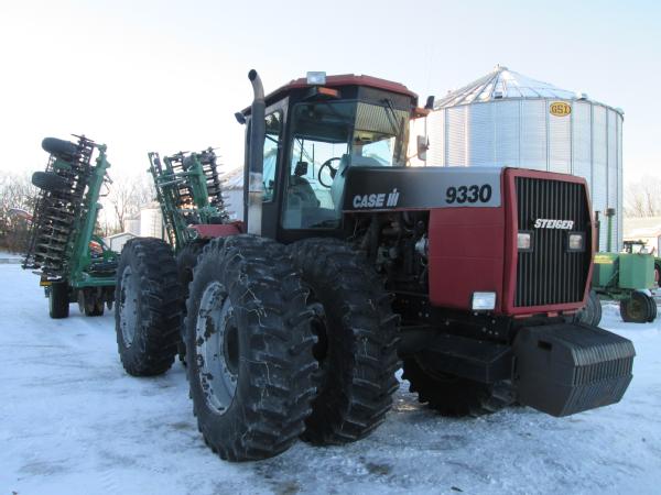 1999 Case/Steiger 9330, 4x4, articulating tractor, diesel engine (head gasket replaced), power shift transmission (DEALER REBUILT IN 2009), Am/Fm cassette radio, air conditioning, tilt/telescoping wheel, front weights, 4 port hydraulic outlets, 3 pt quick hitch WILL BE INCLUDED, 480/80-38 tires new spring of 2013, 1000 RPM PTO, shows 3729 hours.