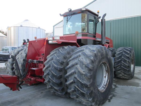 1998 Case/Steiger 9390, 4x4 articulating tractor, Cummins N-14 diesel engine, power shift, Am/Fm radio, air conditioning, tilt/telescoping wheel, 1000 RPM PTO, 4 port hydraulic outlets, 30.5-32 tires & duals, shows 3580 hours.