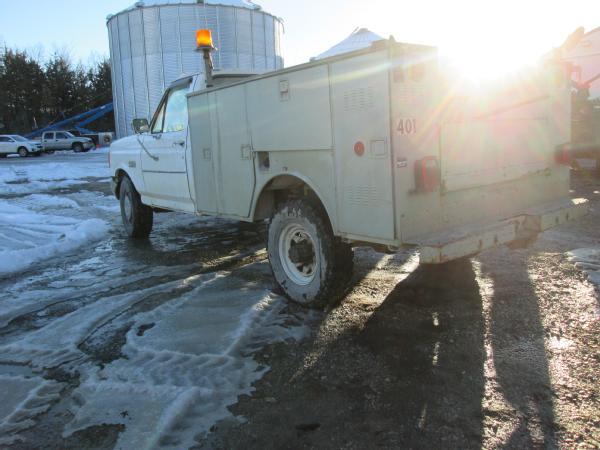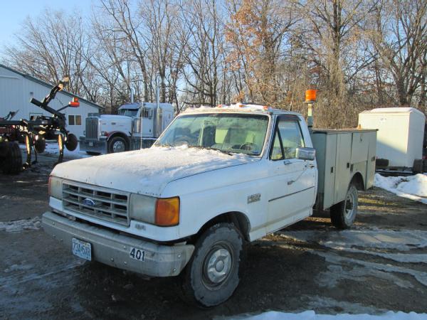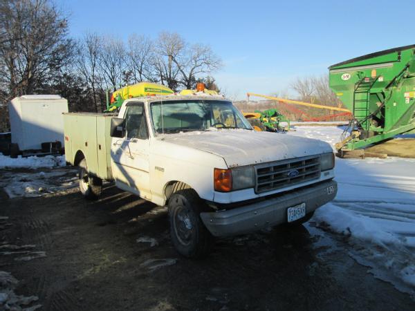 1989 Ford F350 4x2, service pickup, V-8 gas engine, automatic transmission, Am/Fm radio, air conditioning, tilt wheel, cruise control, 8 door Reading service body, shows, 63,388 miles.
