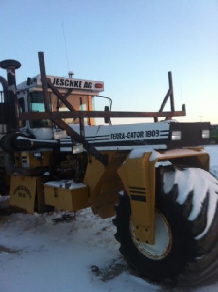 1996 Terra Gator 1803, Cat 3208 diesel engine (Bad Cam Shaft), 18 speed transmission, heat, air conditioning, Am/Fm radio, New Leader L2020 mild steel dry box, Raven monitor. This machine is a Non-Runner.