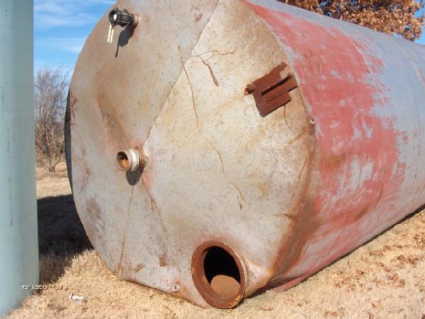15,500 gallon vertical steel tank, 26' 2" tall, 10' 1" diameter.
