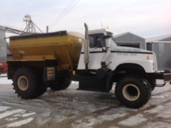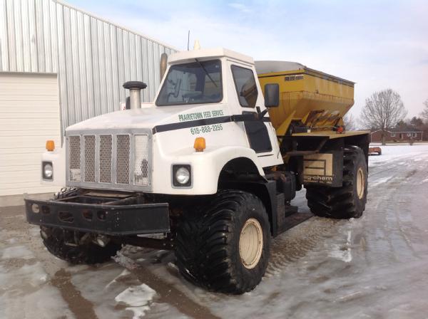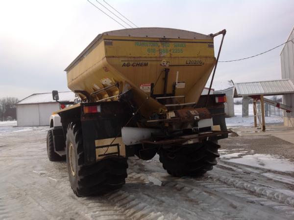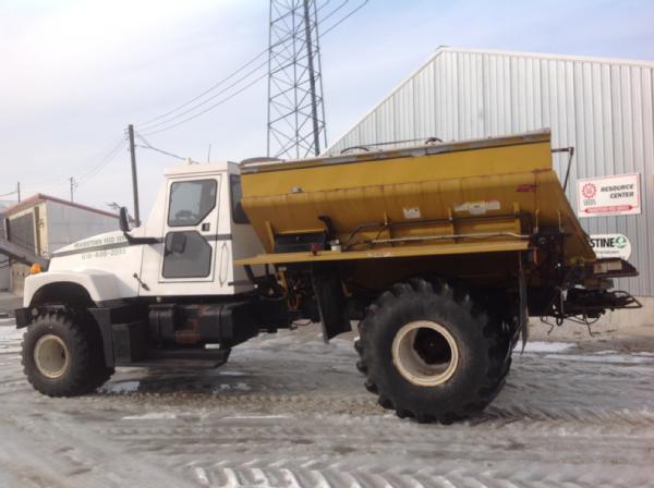 1997 IHC Silver Wheels Center Ride, Cat diesel engine (500 hrs on engine overhaul with documentation), air conditioning, heat, Am/Fm radio, 2006 New Leader 2020 G4 dry spreader box, all hydraulic, New radiator in 2012, 85% front tires, 60% rear tires, Raven Viper Pro monitor, light bar, shows 6400 hours.
