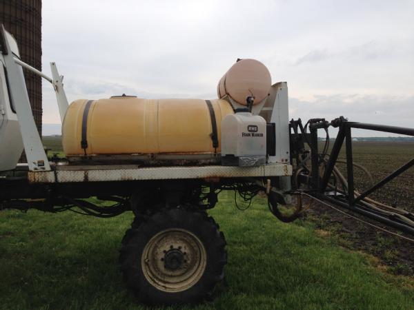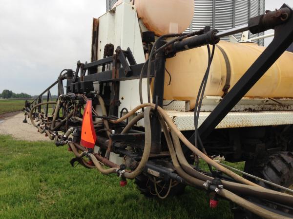 1993 Willmar 750 Air Ride, diesel engine, hydrostatic transmission, air conditioning, heat, Am/Fm radio, 500 gallon poly liquid system, 60' boom, Raven 440 monitor, shows 2466 hours, w/ JTI sprayer trailer.