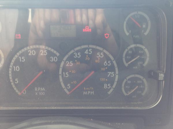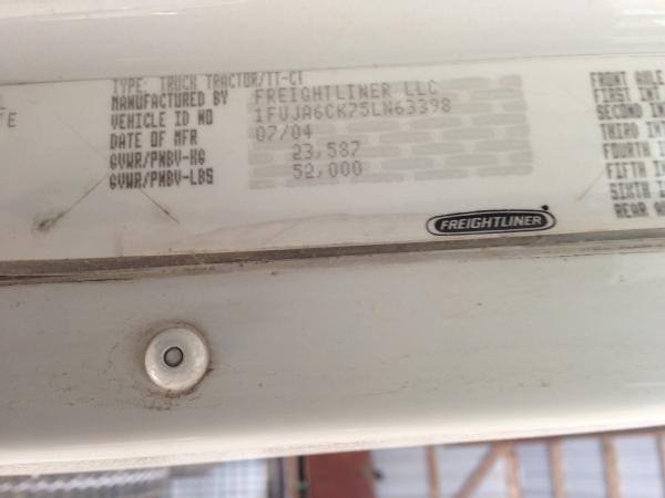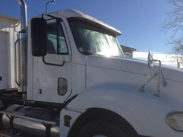 2005 Freightliner CL120 Day Cab, 14L Detroit diesel engine, 10 speed transmission, air conditioning, heat, Am/Fm radio, tandem axle, full screw, 5th wheel, shows 385,000 miles.