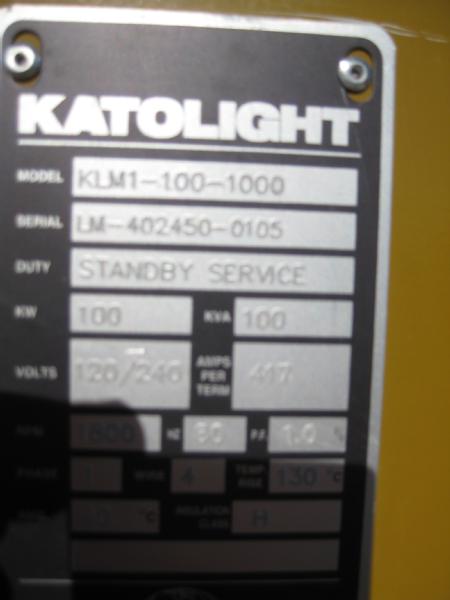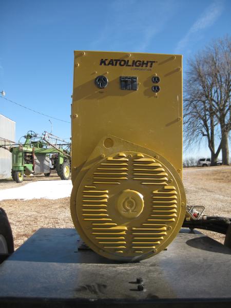 Like New Katolight 100 KW continuous generator, model KLM 1-100-1000, 100 KW, S/N LM-402450-0105 on factory cart, PTO drive, 20' of heavy lead - in cable included, unit has only ran 6 hours.