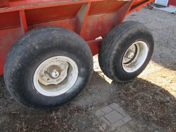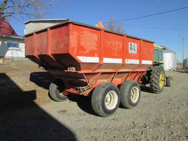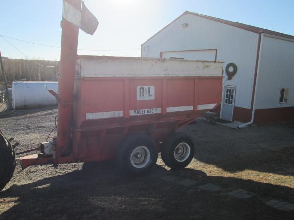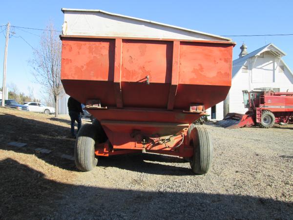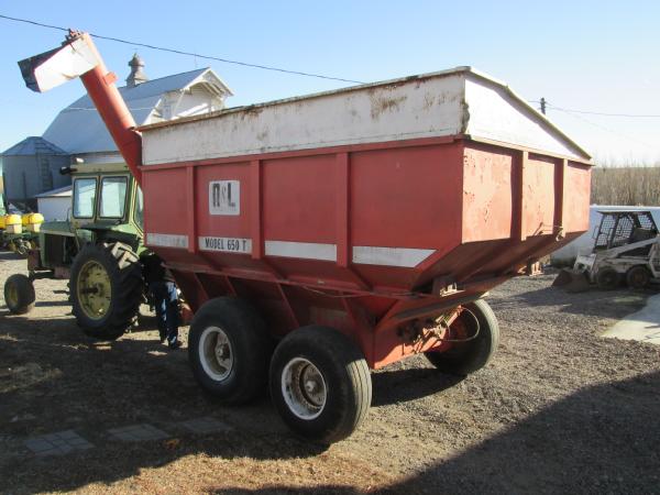 A&L model 650T grain cart, tandem axle, 1000 RPM PTO, manual fold over auger, gear box has been rebuilt.