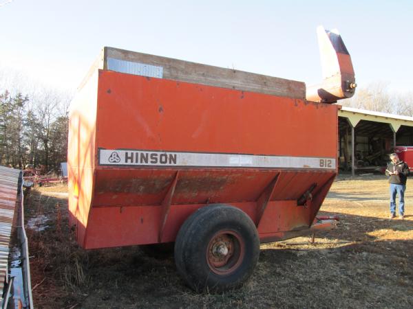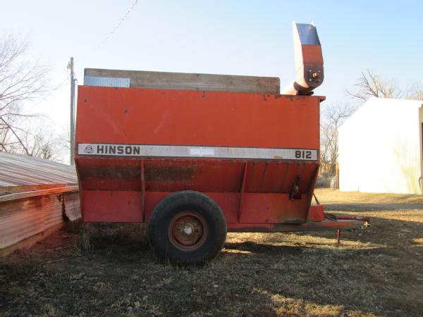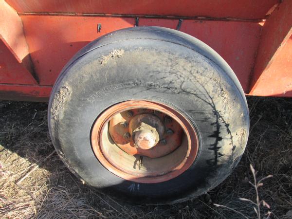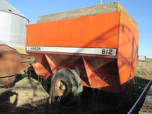 Hinson model 812 grain cart, 1000 RPM PTO, 49 x 17 tires, manual fold over auger, rebuilt auger.