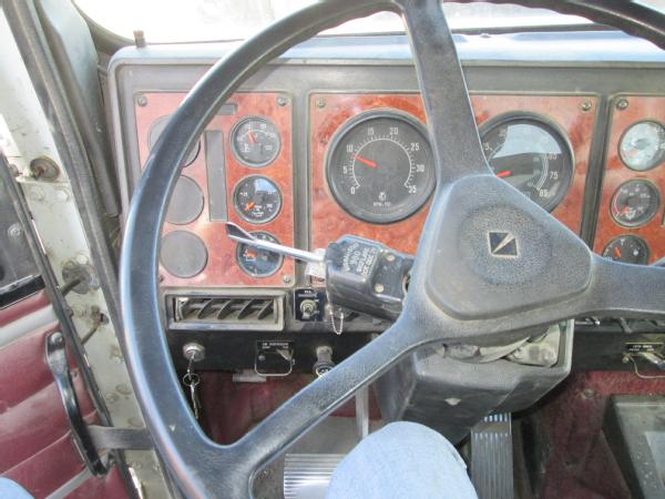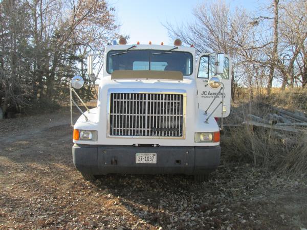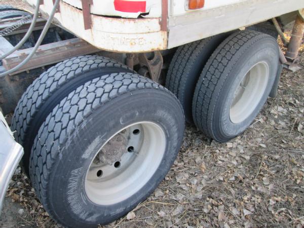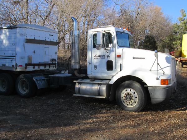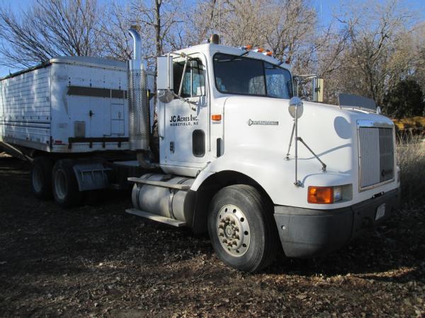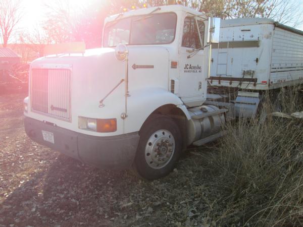 1993 International 9200 day cab, L-10 Cummins diesel engine, 10 speed transmission, heat, air conditioning, Am/Fm radio, cruise control, differential lock, engine brake, air slide 5th wheel, air ride suspension, dual aluminum fuel tanks, 203" wheel base, 295/75R22.5 tires, 10 aluminum Budd wheels, shows 718,392 miles.