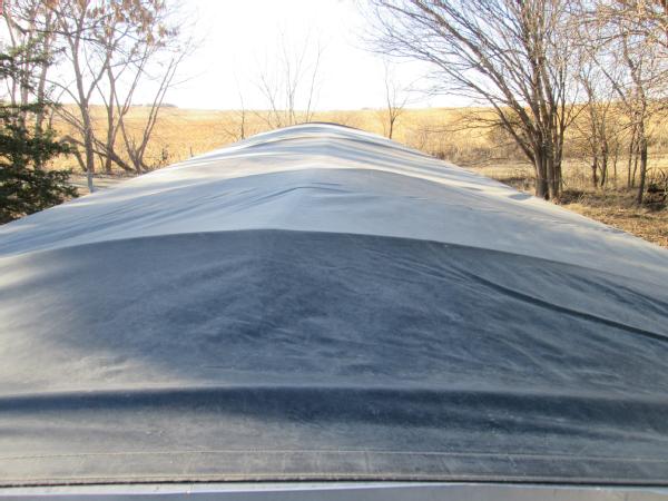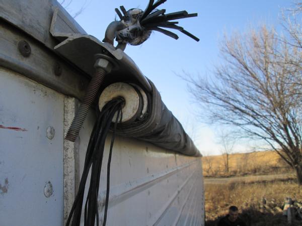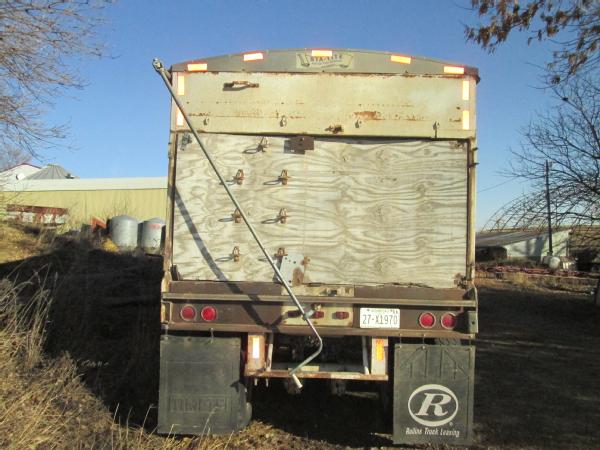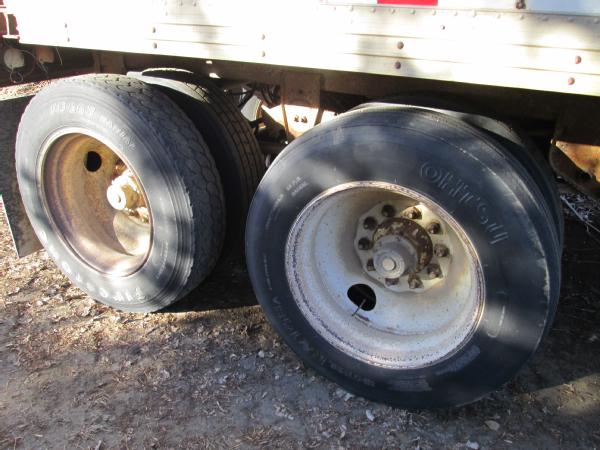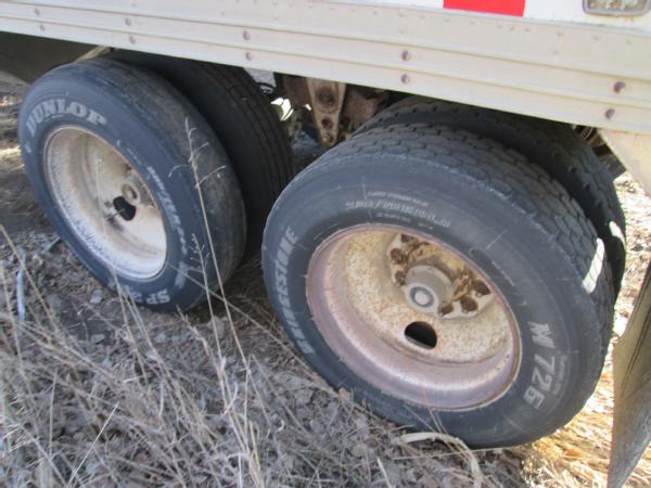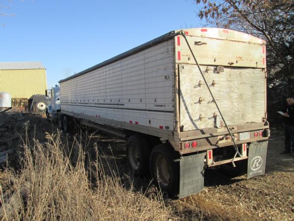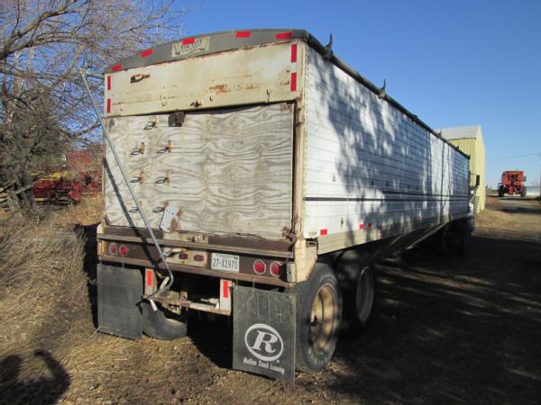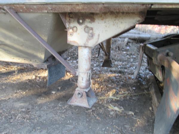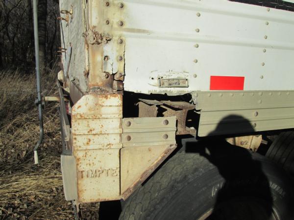 1975 Timpte 42' grain trailer, 66" sides, tandem axle, spring suspension, roll over tarp, 24.5 tires, steel Budd wheels.