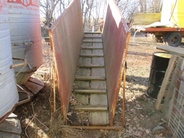 MUHE Mfg. Co. livestock loading chute, wood floor, metal sides.