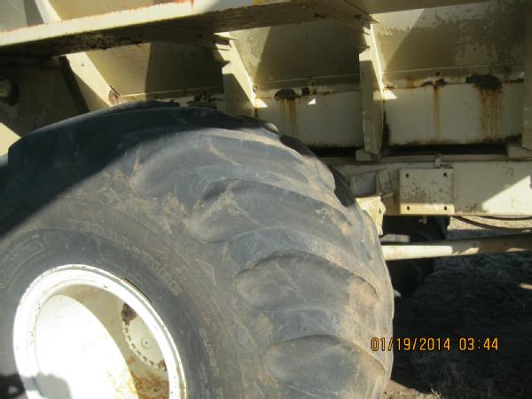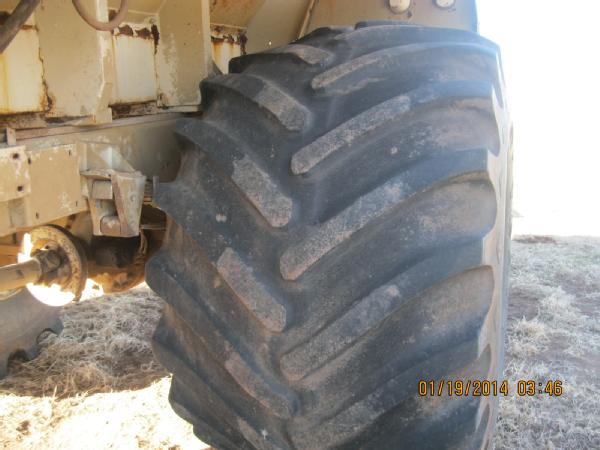 1989 Mertz, Cat 3208 diesel engine, Allison automatic transmission, heat, air conditioning (not been serviced), New Leader L2020 GT-12 mild steel dry spreader box, 66x43.00-25 rear tires (40%), 48x25.00-20 front tires (50%), Mark III New Leader monitor, shows 10,343 hours.