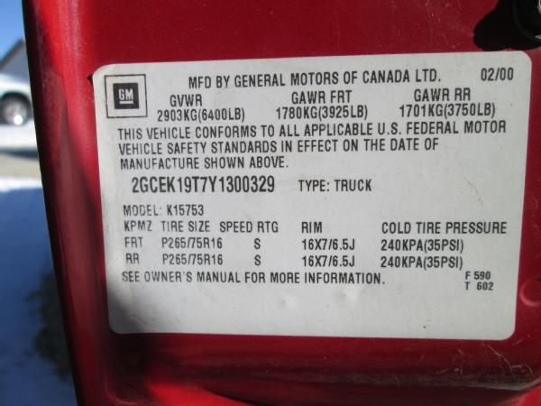 2000 Chevrolet 1500 4x4 (Unit 12063), V8 gas engine, automatic transmission, heat, air conditioning, Am/Fm CD radio, power windows and locks, tilt wheel, cruise control, aluminum running boards, tow package, shows 200,000 miles.