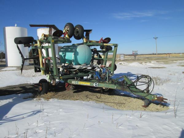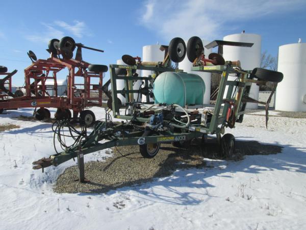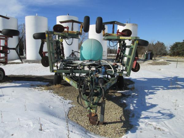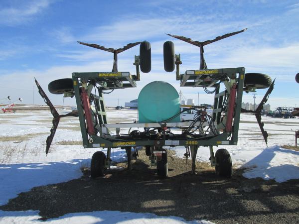Sunflower Flex-King Model 3460 (Unit 4033), 6 blade dual applicator, 500 gallon poly liquid tank, smooth front coulters, John Blue ground drive pump, hydraulic wings, hydraulic gauge wheels, 11L-15 tires, Continental flow meter.