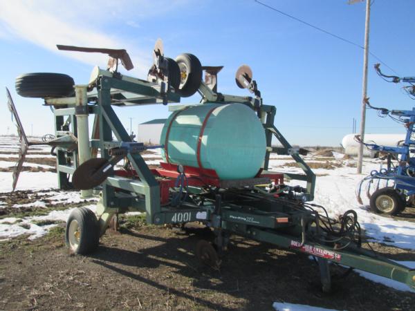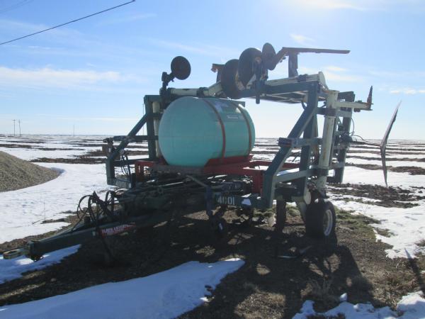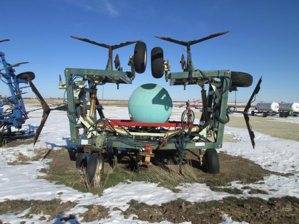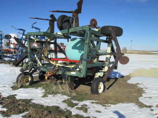 Flex-King XL Series (Unit 4001), 6 blade dual applicator, 500 gallon poly liquid tank, ripple front coulters, hydraulic wings, gauge wheels, ground drive liquid pump, Continental flow meter.