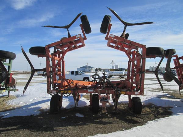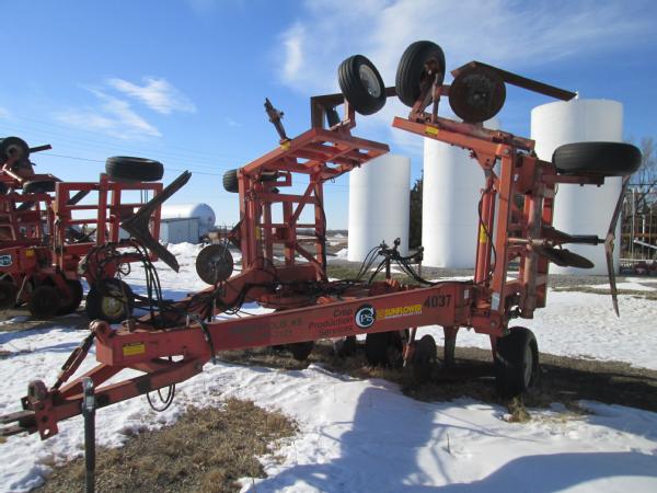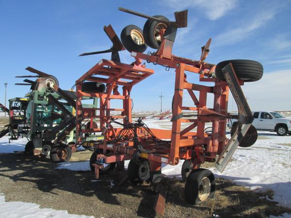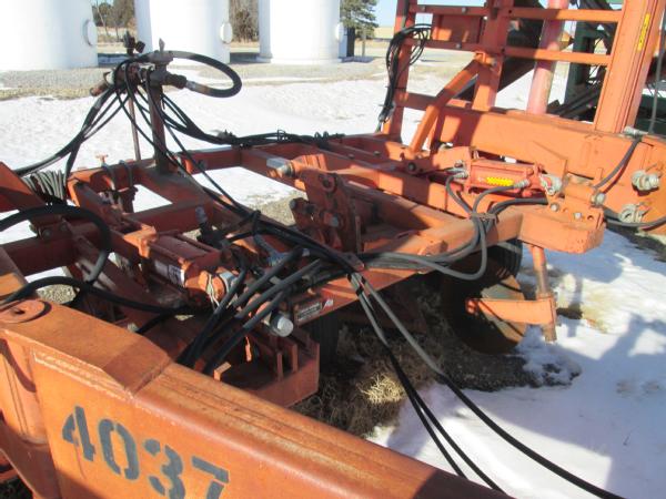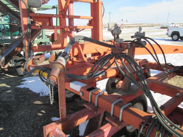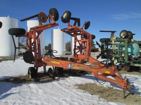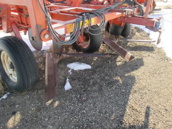 Sunflower Richardson 3660 (Unit 4037), 6 blade pull type tool bar, ripple front coulters, hydraulic wings, gauge wheels, 11L-15 tires, Continental flow meter.