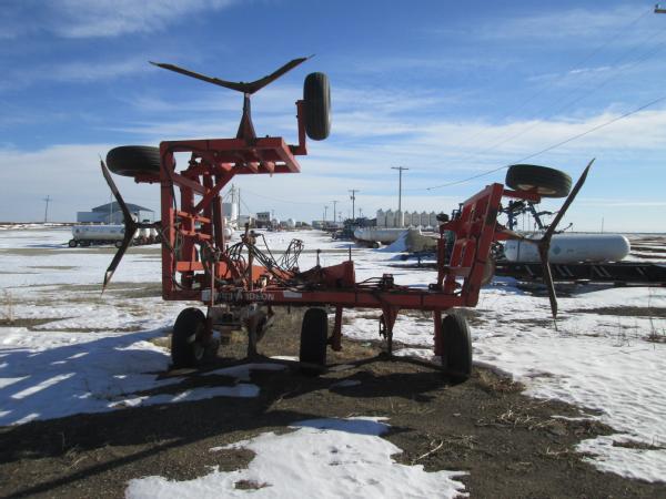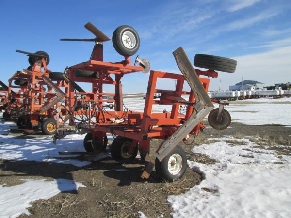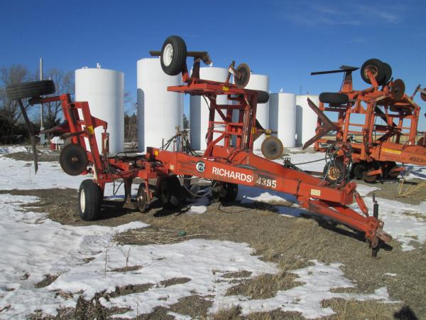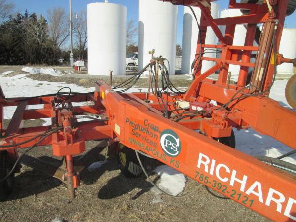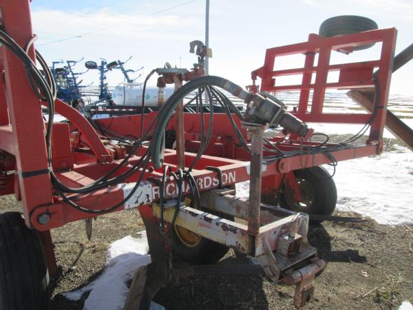 Richardson 5 blade pull type tool bar (Unit 4385), ripple front coulters, hydraulic wings, gauge wheels, Continental flow meter, 11L-15 tires.