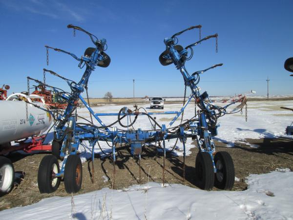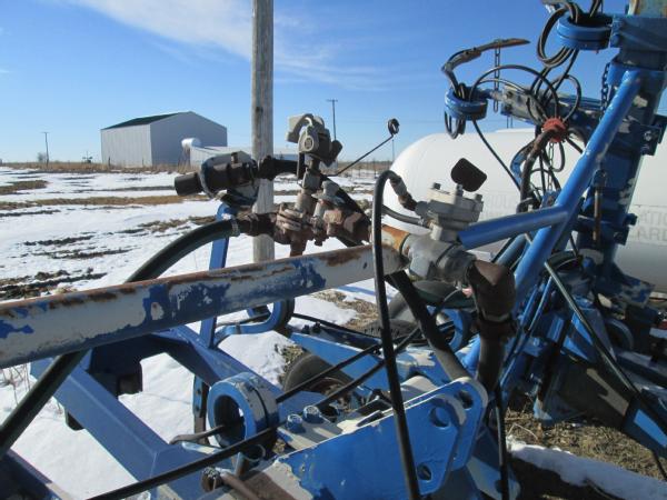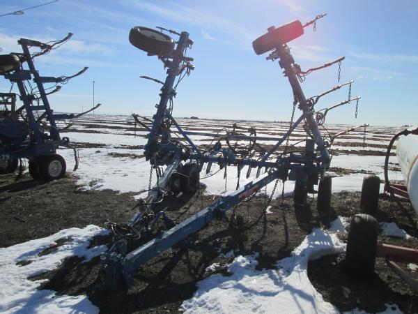 Blu-Jet 17 knife pull type tool bar (Unit 3047), 32', hydraulic wings, manual gauge wheels, drag chains, dual main frame wheels, Continental flow meter.