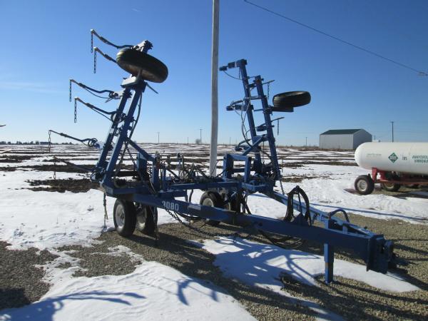 Blu-Jet 19 knife pull type tool bar (Unit 3080), 32', hydraulic wings, manual gauge wheels, drag chains, dual main frame wheels, Continental flow meter.