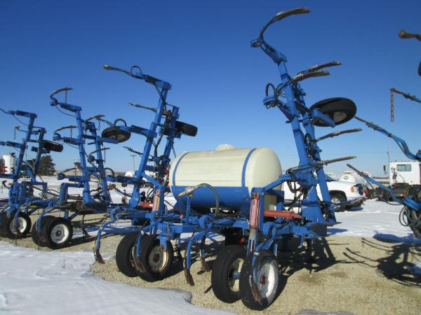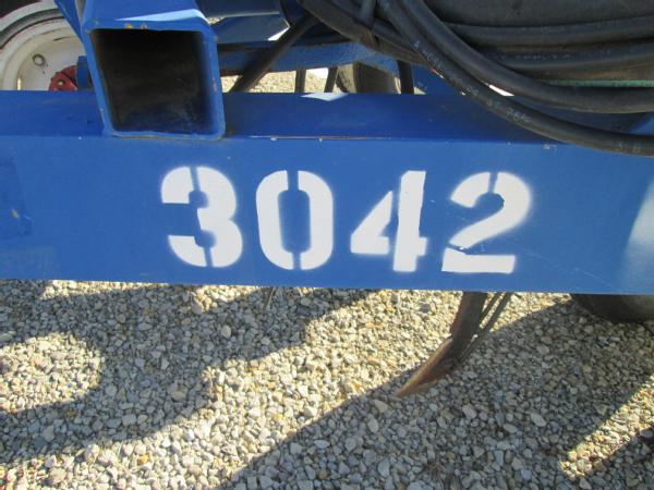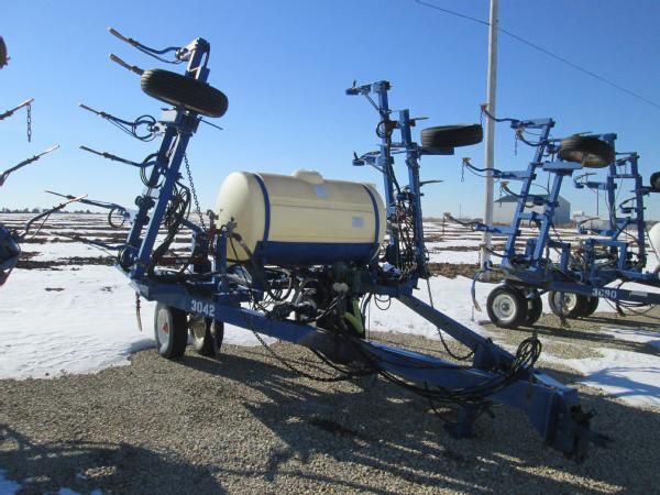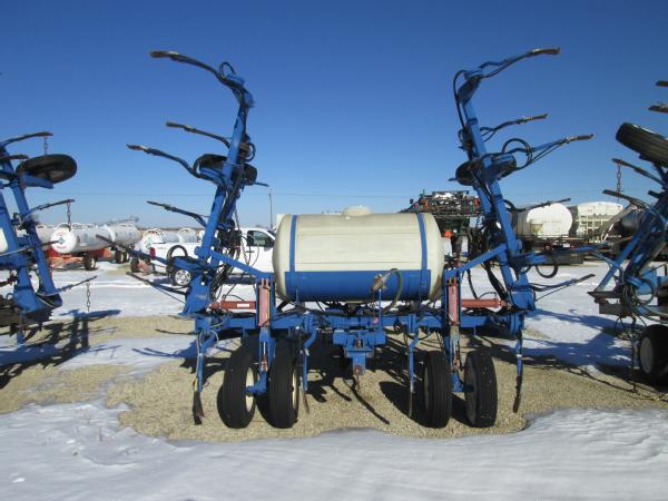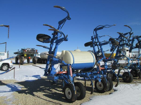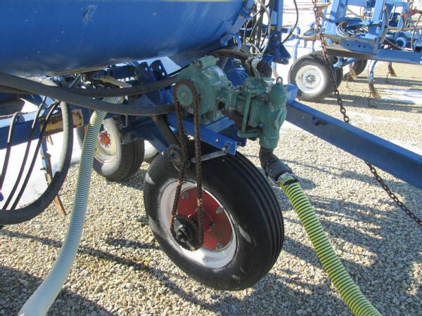 Blu-Jet 19 knife pull type liquid applicator (Unit 3042), 32', hydraulic wings, manual gauge wheels, dual main frame wheels, 500 gallon poly liquid tank, Continental flow meter, ground drive pump.