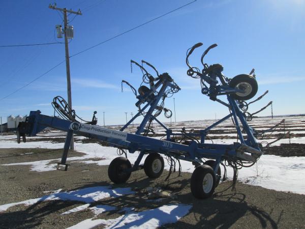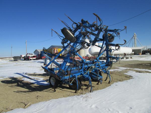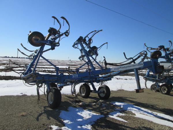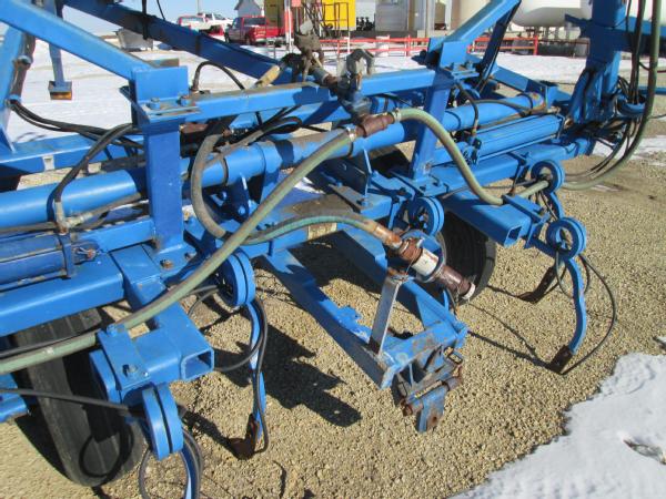 Blu-Jet 25 knife pull type tool bar (Unit 3179), 37', hydraulic wings, manual gauge wheels, drag chains, walking tandems, Continental flow meter.