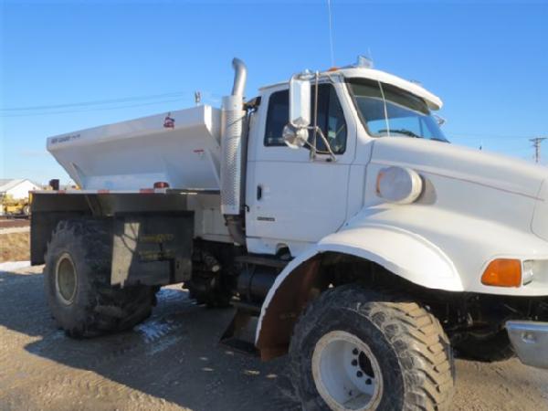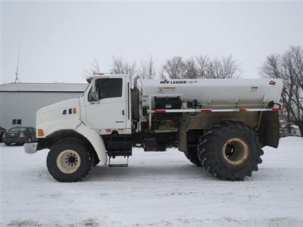 2000 Sterling, Cat 3126 diesel engine, Allison automatic transmission with 2 speed rear end, heat, air conditioning, Am/Fm radio, air ride seat, New Leader L3020 G4 stainless steel dry spreader box, all hydraulic, dual spinners, 66x43.00-25 rear tires, 48x25-20 front tires, Raven 660 controller, shows 82,212 miles, shows 6239 hours.