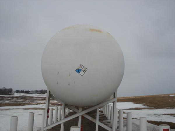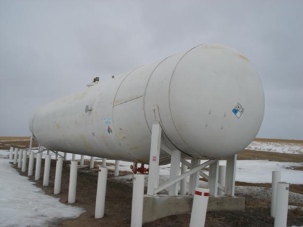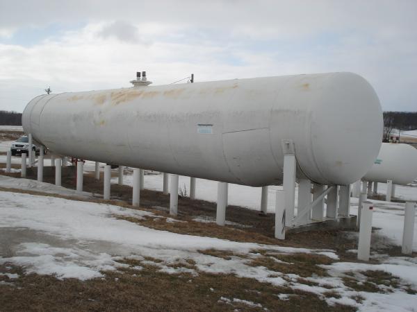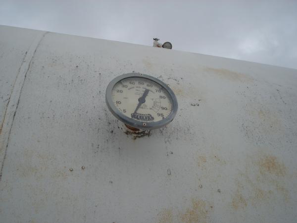 33,000 gallon NH3 storage tank, steel saddles, volume gauge, tank & valve only, no data plate.