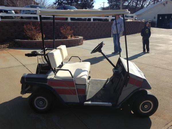 EZ-GO four wheel golf cart, Trojan batteries (age unknown and weak), canopy, charger
