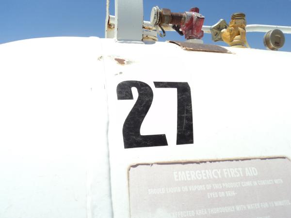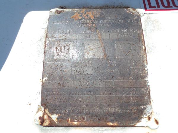 1961 Lubbock Machine & Supply Co., Inc. 1,000 gallon anhydrous nurse tank (Unit 27), top front fill, 4 wheel running gear, 11L-15 flotation tires, data plate.