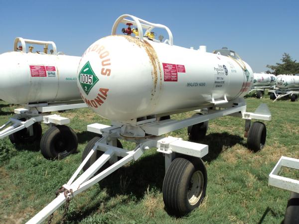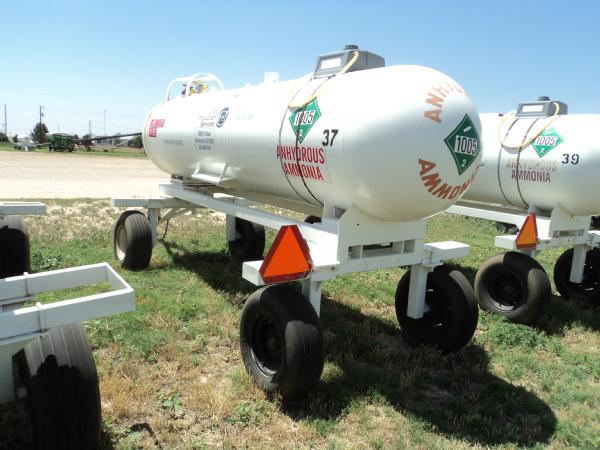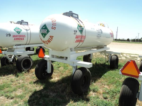 1,000 gallon anhydrous nurse tank (Unit 37), top front fill, 4 wheel running gear, 11L-15SL flotation tires, data plate.