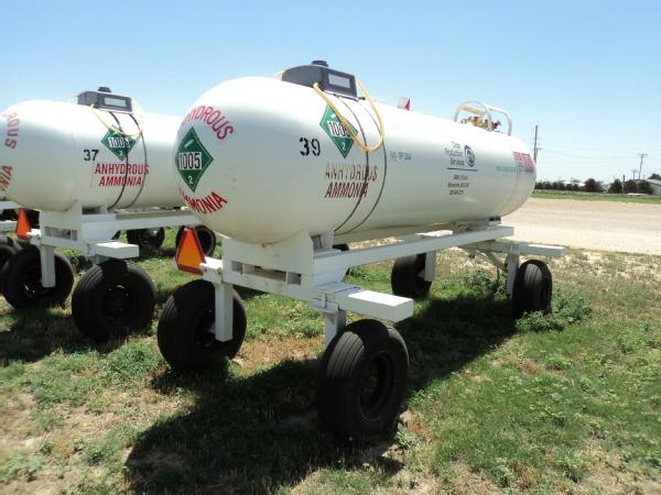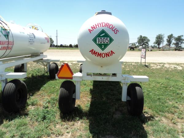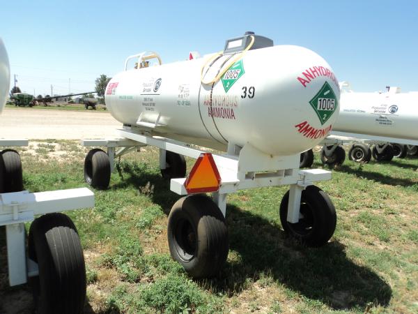 1,000 gallon anhydrous nurse tank (Unit 39), top front fill, 4 wheel running gear, 11L-15SL flotation tires, data plate.