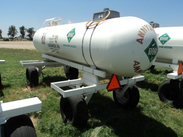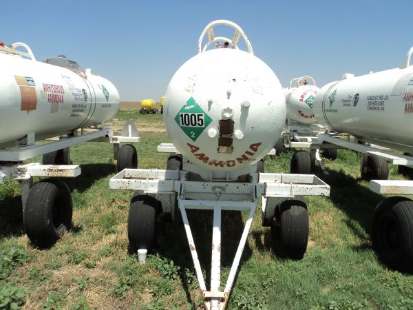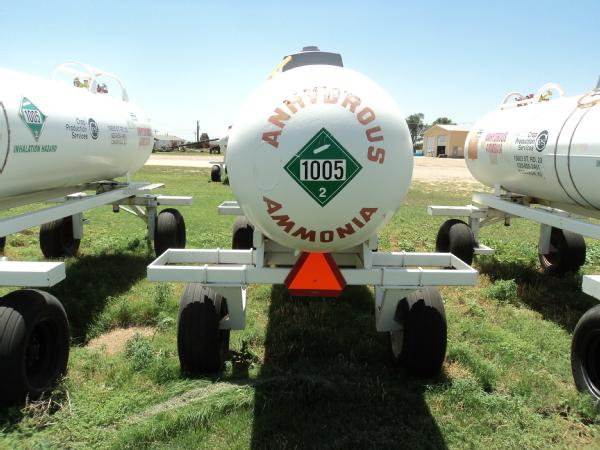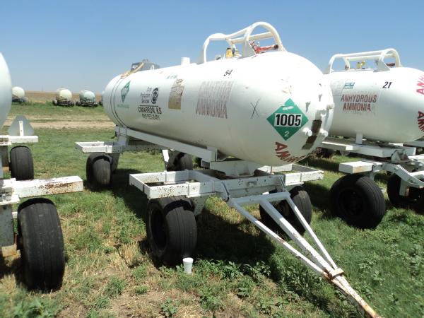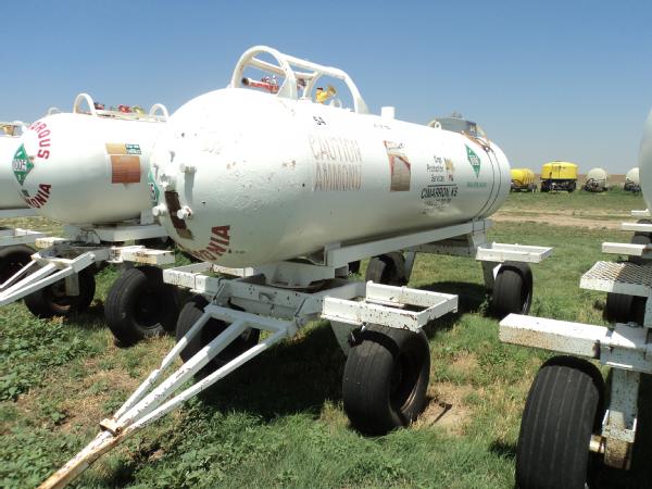 1,000 gallon anhydrous nurse tank (Unit 54), top front fill, 4 wheel running gear, 11L-15 flotation tires, data plate.